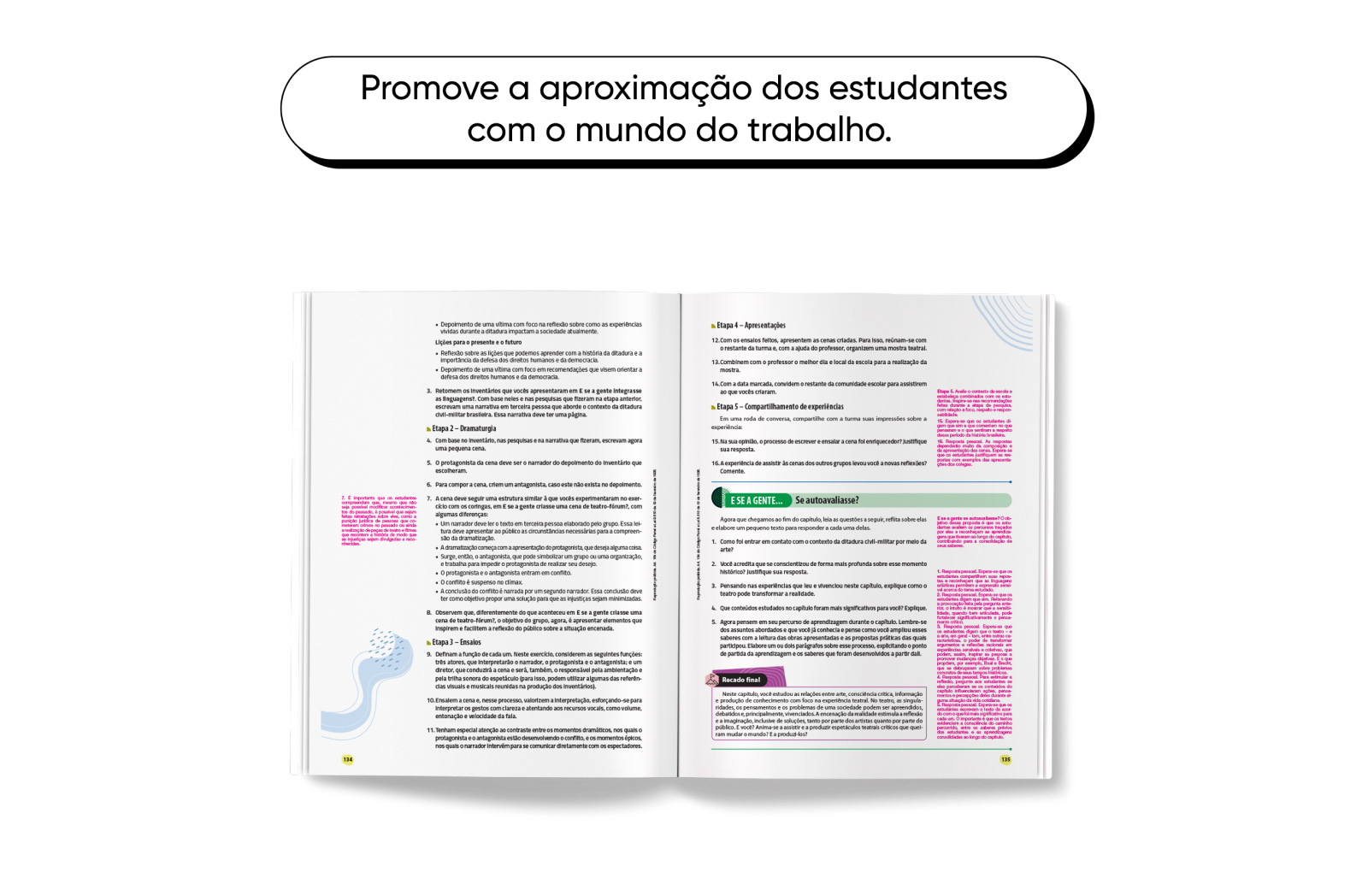 Valoriza leitura, contextualização e produção.