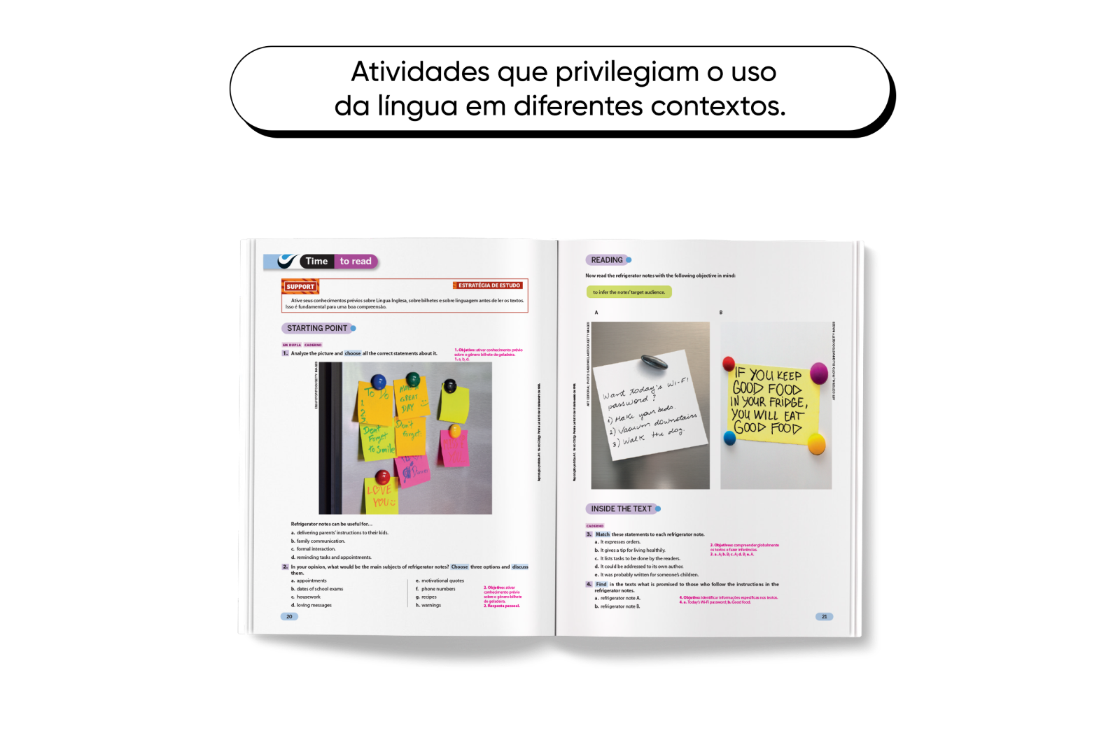 | 1 - INTERACTING Gênero do discurso: bilhete. Tema: interação social na vida diária. | Time to read | 20 | Inside the text | 21 |
