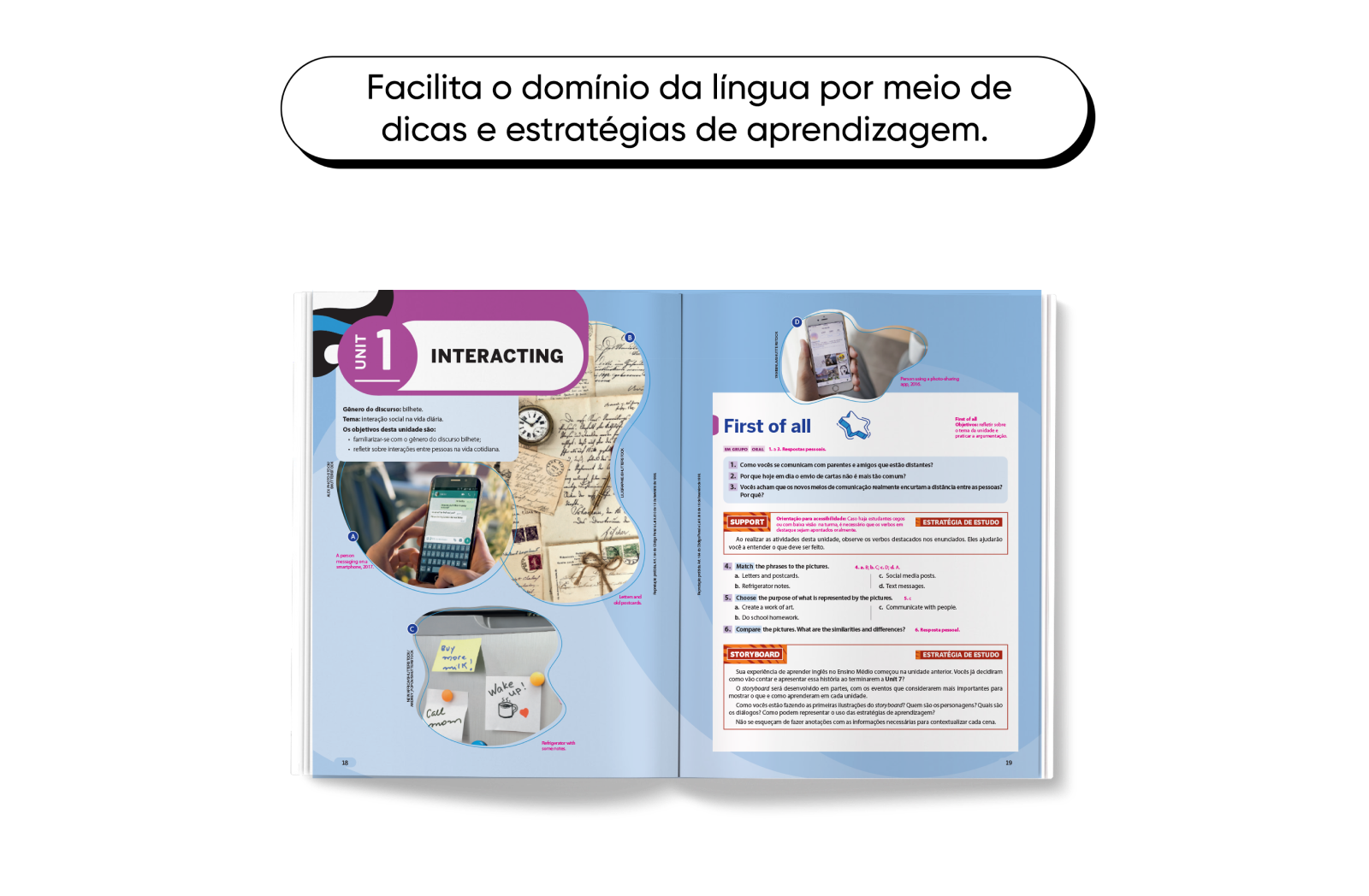 | 1 - INTERACTING Gênero do discurso: bilhete. Tema: interação social na vida diária. | First of all | 19 | Saiba + | 17 |