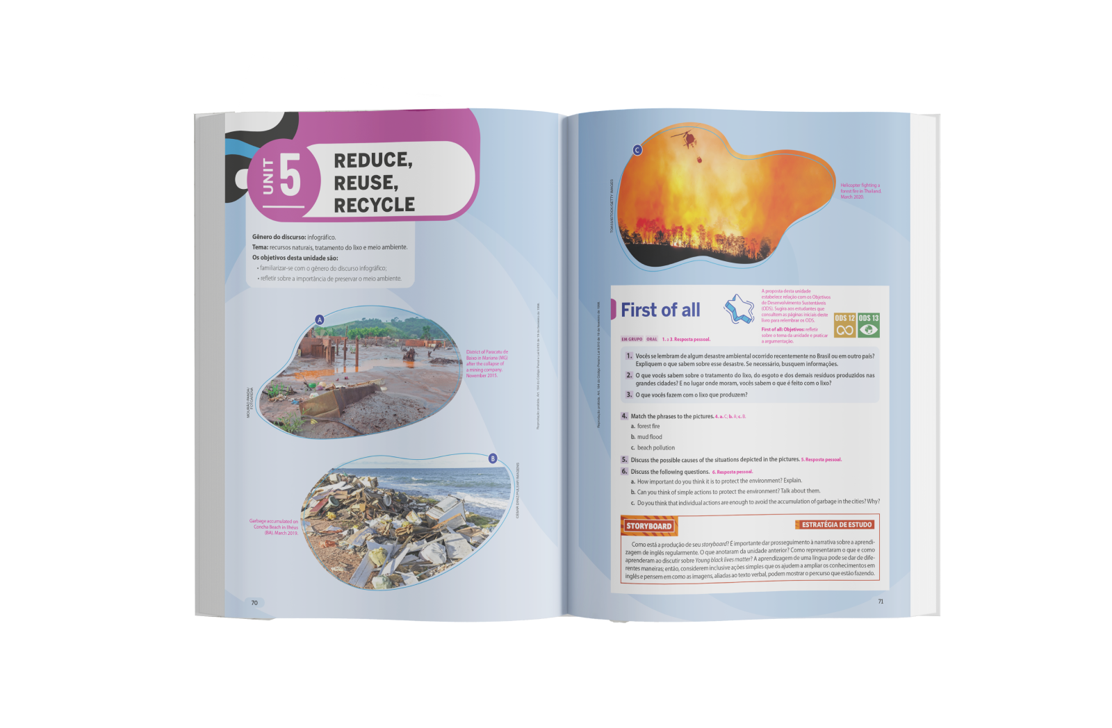 | 5 - REDUCE, REUSE, RECYCLE Gênero do discurso: infográfico. Tema: recursos naturais, tratamento do lixo e meio ambiente. | Your turn | 81 | Call to action | 81 |