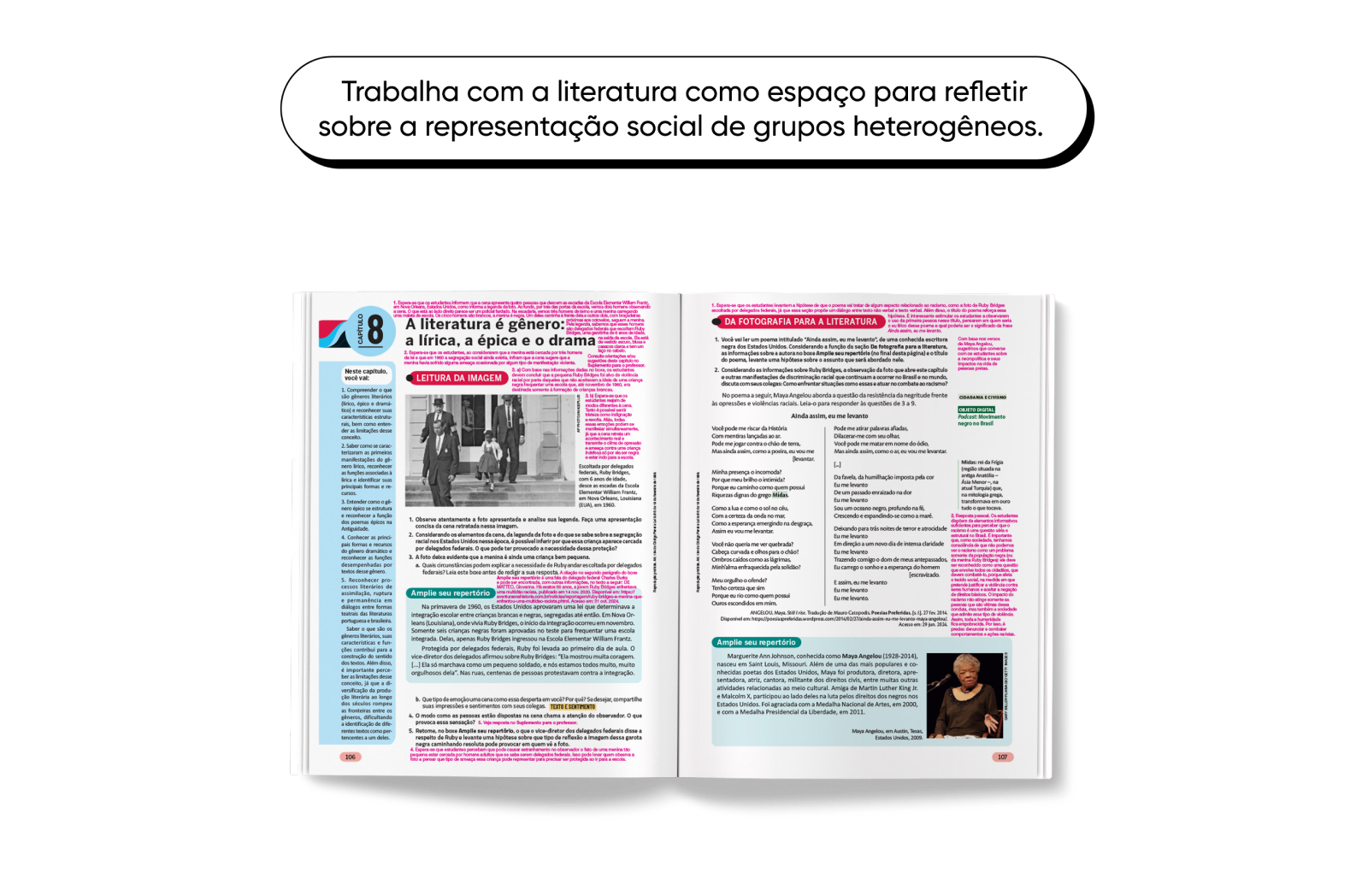 Impulsione seu protagonismo juvenil! Português com foco na leitura crítica, produção textual e uma literatura que celebra a diversidade.