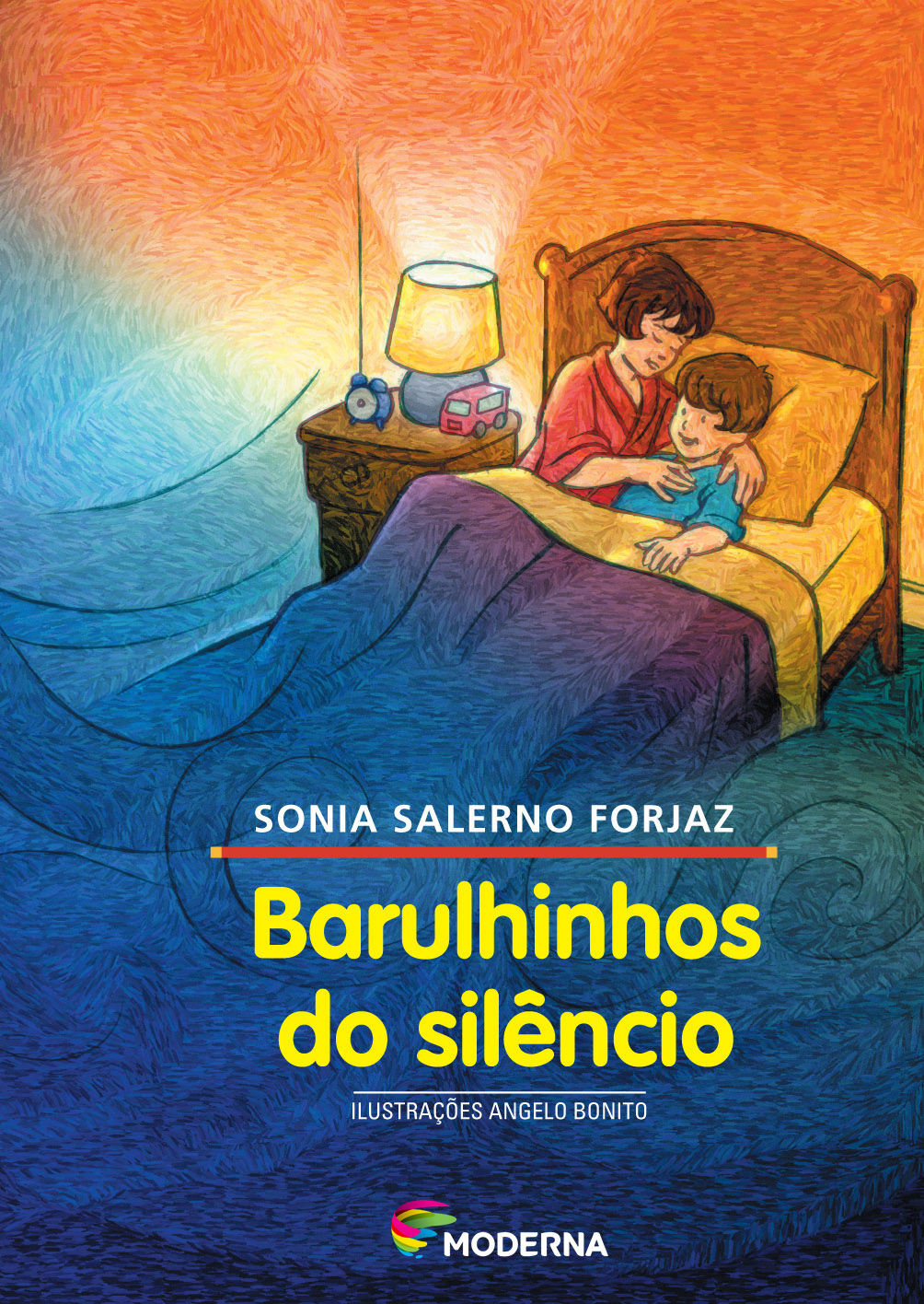 Quando as luzes se apagam e a criança fecha os olhos, o mundo se apresenta, cheio de sons, de barulhos que são normais quando se está no claro, mas que se tornam assustadores quando tudo fica escuro. Nesta história, Hugo vai entendendo os barulhinhos do seu silêncio, os sons do seu carinho, a pulsação de sua vida!